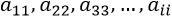 대각 원소란 행렬의 주대각선에 위치하는 원소를 의미하는데, 표기법은 다음과 같습니다.