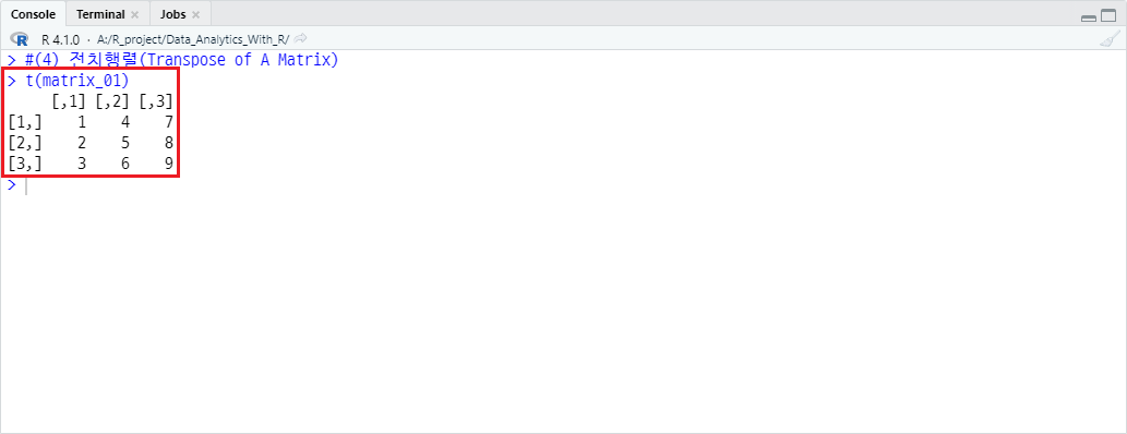 (4) 전치행렬(Transpose of A Matrix) 함수, t()