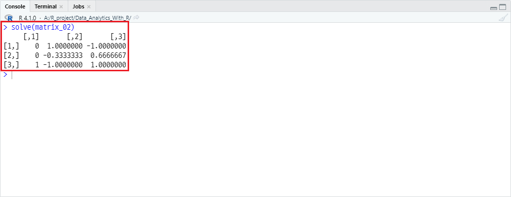 matrix_01의 행렬식은 0에 무수히 가까워 역행렬이 존재하지 않으므로, 새로운 행렬 matrix_02을 정의해 예를 들면 다음과 같습니다.