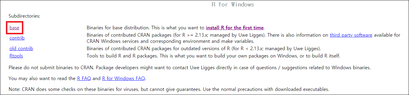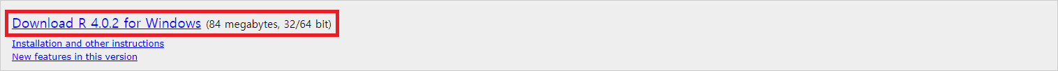 (5) Download R for 4.0.2 for Windows 링크를 클릭하여 파일을 다운로드합니다.