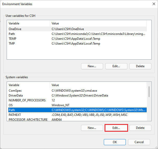 (5) System Variables 중 [Path]를 더블클릭하거나, [Edit...]버튼을 클릭합니다.