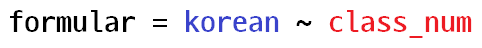 formular 형식이란, 두 변수간의 관계를 ~(Tilde Sign)을 통해 표현하여 정의하는 것을 의미합니다. 주로 여러 통계, 머신러닝 등 데이터 분석용 함수에서 사용되며, aggregate() 함수의 formular 사용 방법은 다음과 같이 사용됩니다.