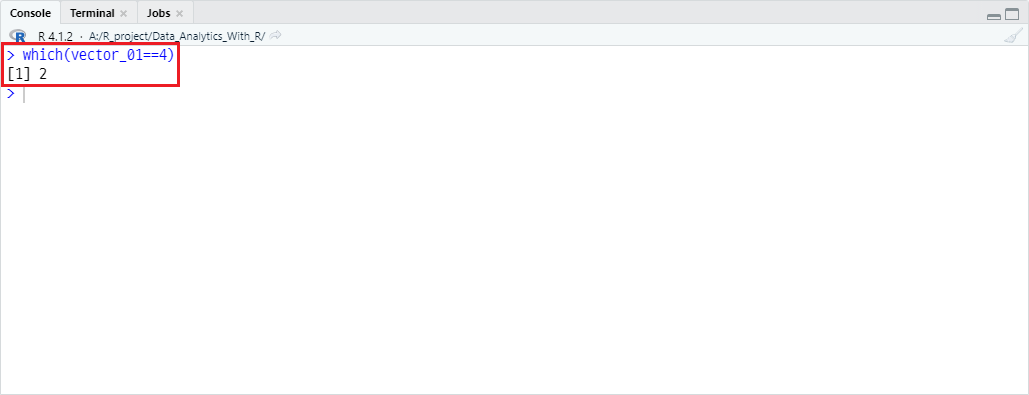 vector_01 중 값이 4인 원소의 인덱스를 찾고자 할 때, 코드는 다음과 같습니다.