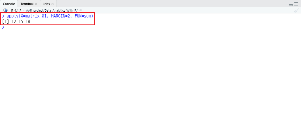apply(X=matrix_01, MARGIN=2, FUN=sum)