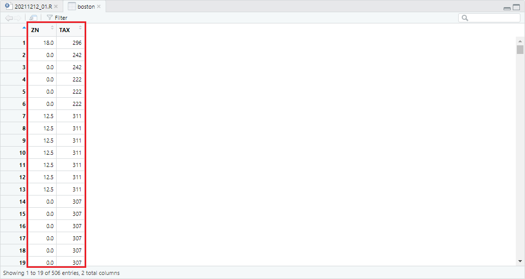 boston <- boston_raw[, c('ZN', 'TAX')] #BACK-UP