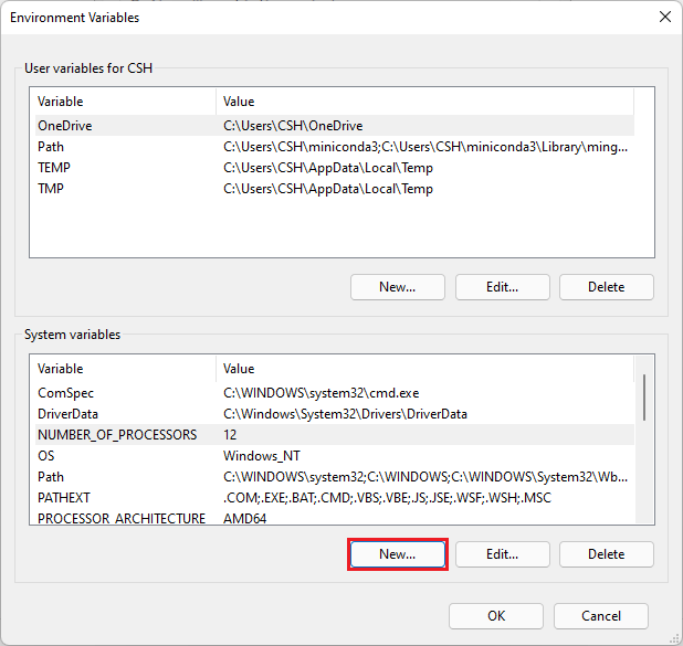 (3) System Variables 칸의 [New...]버튼을 클릭합니다.